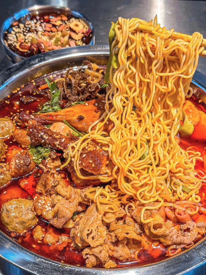 想象一下,一盆热气腾腾,滋滋冒油的冒菜,视觉呈现大气漂亮,适合多人共享,也可以单人尽享。再搭配上好看的冷饮和甜品,视觉感非常强,让人忍不住拍照打卡,分享出圈。