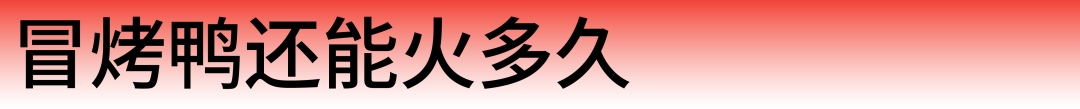 但不得不承认的是,如今爆火的冒烤鸭市场依旧是“勇敢者的游戏”,对于商家来说,想要稳住冒烤鸭的市场还是需要维持住冒烤鸭的核心竞争力,在极致的性价比和社交属性上做到最好,日后再加上稳定供应链需求,未来同样可期。