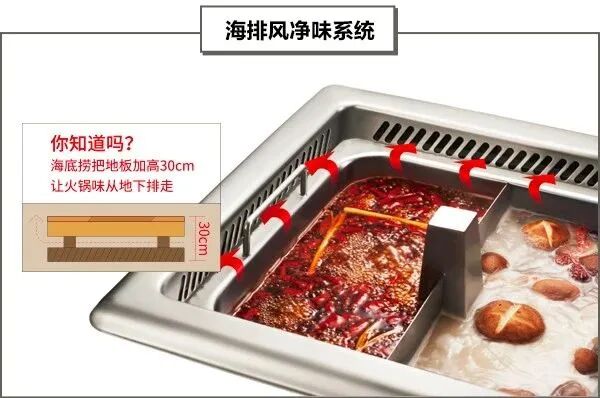 而海底捞采用的地排风,则将吸烟口直接设置在锅口四周,利用近距离负压吸走油烟,大大降低了气味扩散的可能。
