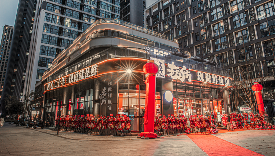 所有门店坚持明档、鲜鱼坊、现炒区等核心模块,保证品牌识别的统一性;但同时也会根据门店面积、地域文化微调空间配置。