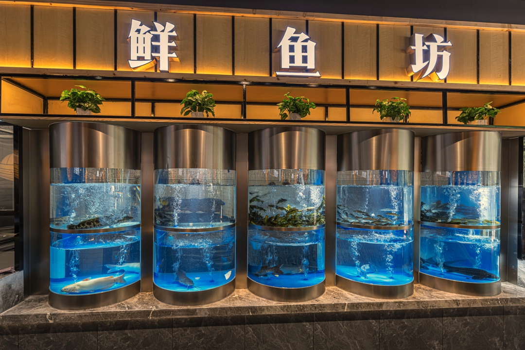 它不仅是一个食材储存区,更是一个品牌符号,用最直接的方式建立“活鱼现杀”的认知信任。