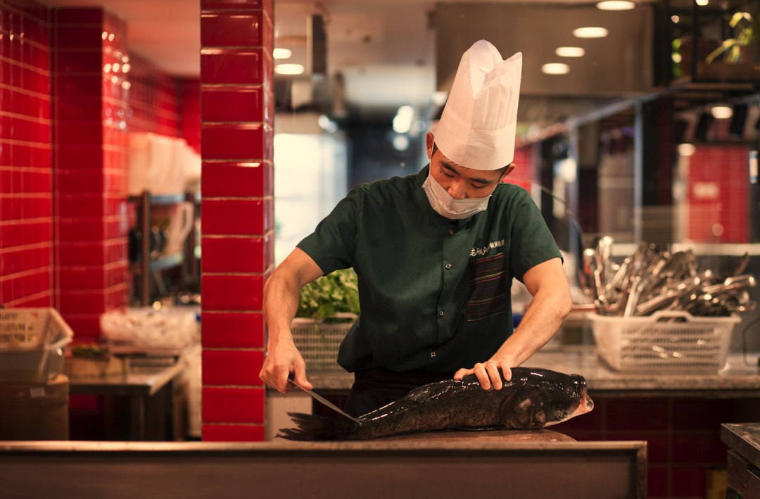 顾客从进门开始,就被卷入一场关于“鲜”的叙事中——鱼缸中游动的活鱼、现场称重宰杀的动作、热油浇淋爆出的椒香……