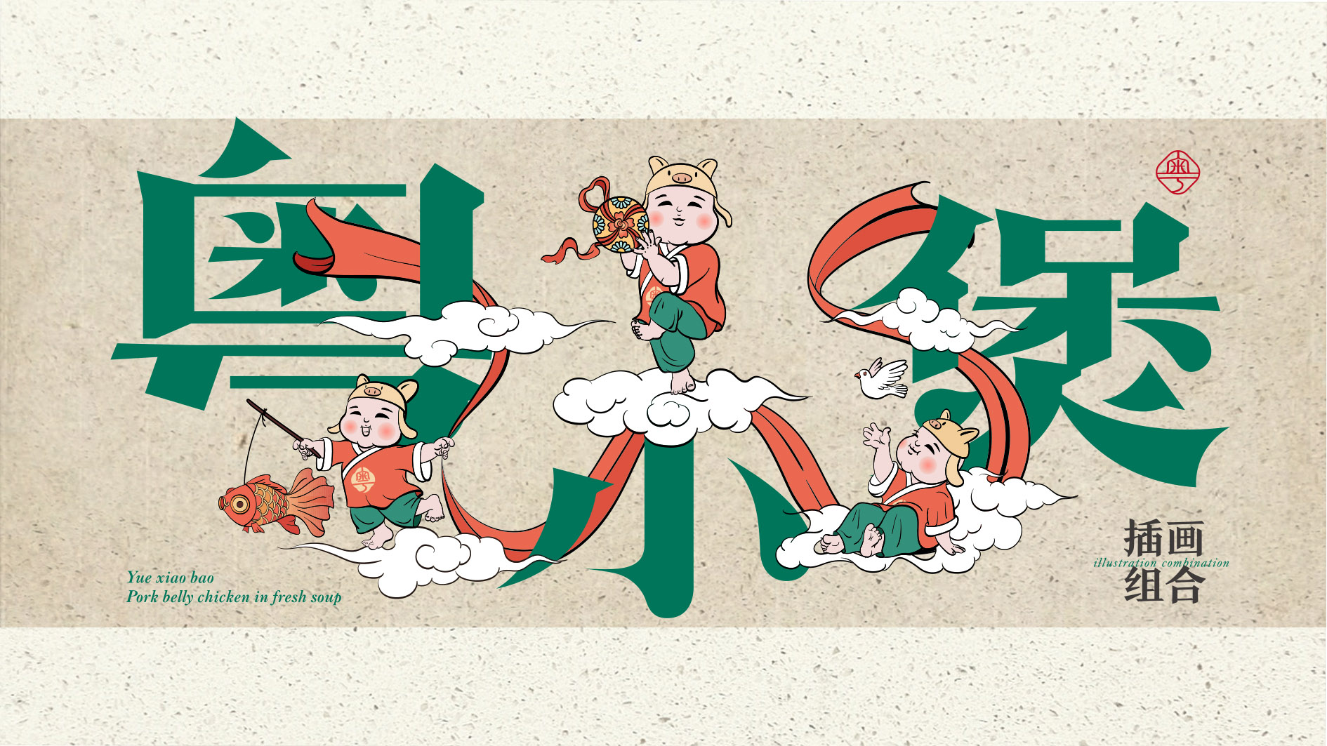舞狮:以小宝为IP原型,与狮形象进行结合,构建小宝端着乳鸽,引着两只南狮争抢画面。