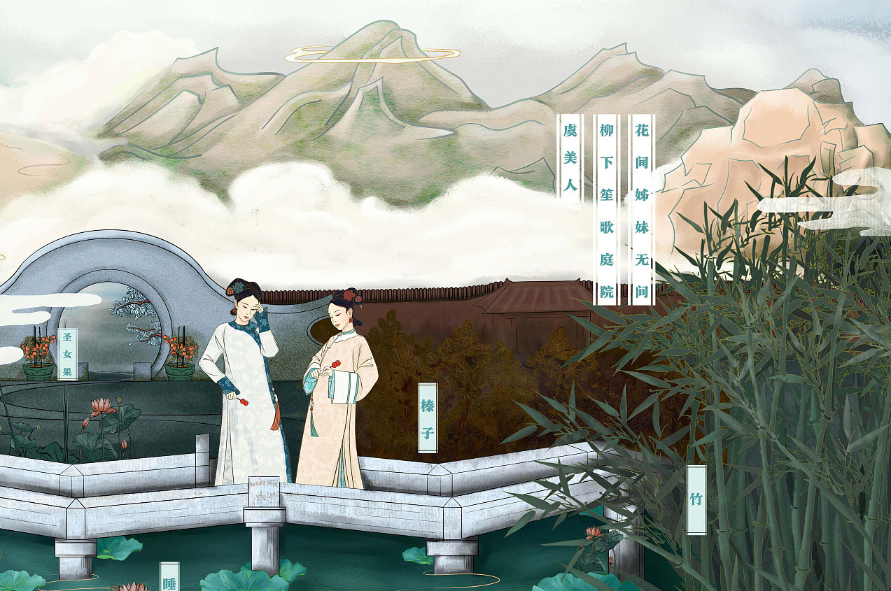 以晚清爱情故事作为时间轴,用卷中“格格”的视角来表达品牌情感,用四季变化表达感情和一生。同时,我们将食材感情化融入到场景中,以意代物,以情代文。多角度、深度表达品牌。长卷轴作为品牌文化与产品的交融点,不仅作为辅助图形设计,还可以提炼视觉核心“格格”的不同呈现,强化品牌感情共鸣,加强品牌与消费者的感情纽带。